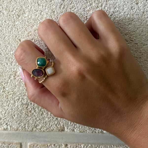 BAGUE CHARLIZE - AVENTURINE VERTE AMÉTHYSTE & AGATE BLANCHE