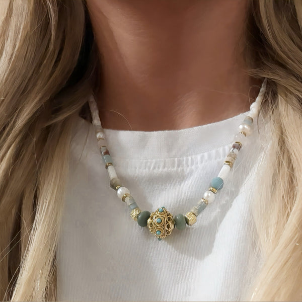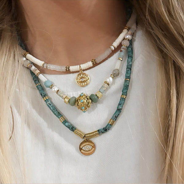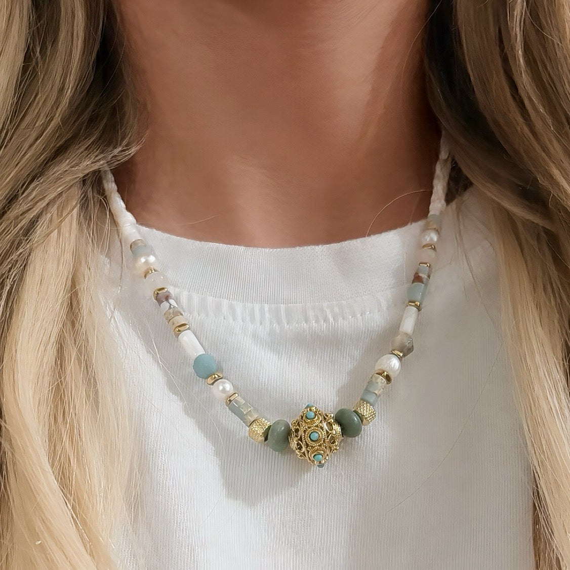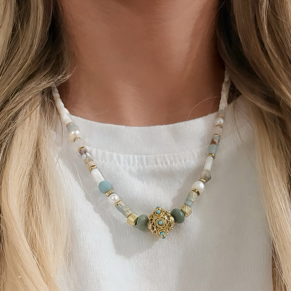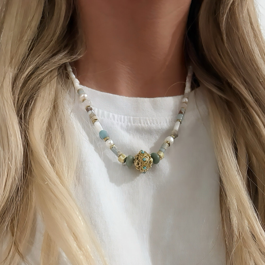 COLLIER PIÈCE UNIQUE N°4 - AMAZONITE / NACRE BLANCHE / JASPE