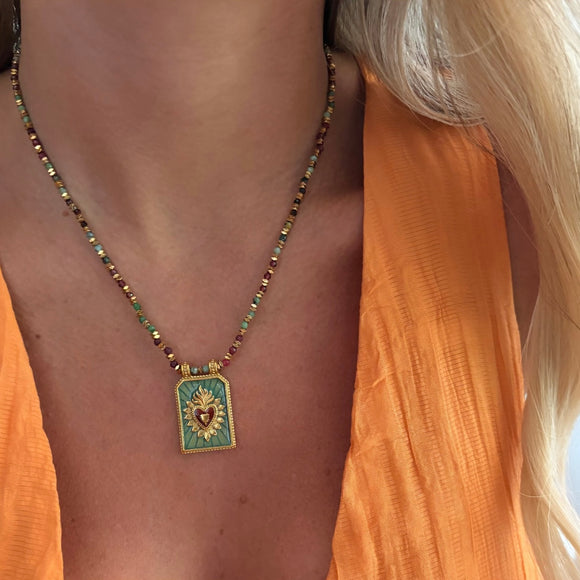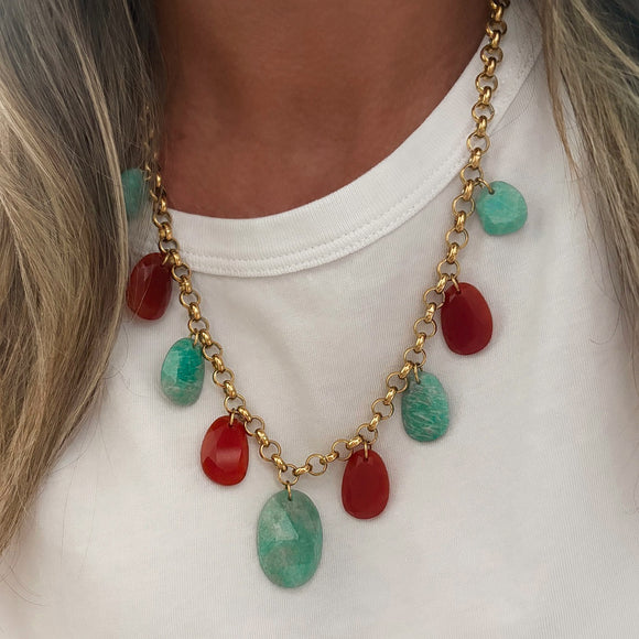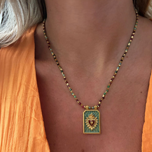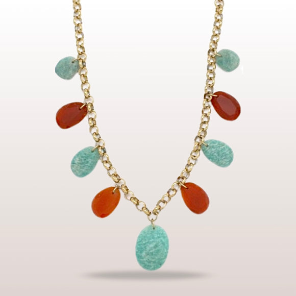 COLLIER DEVA - AVENTURINE ORANGE & AMAZONITE