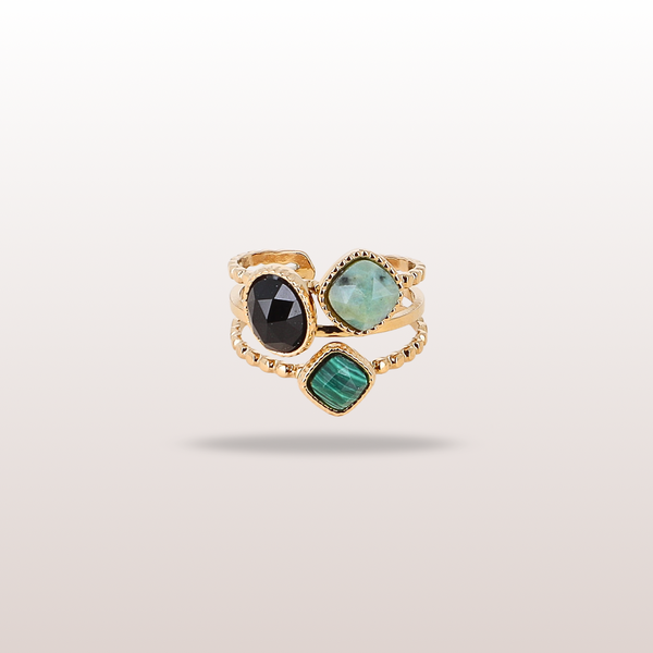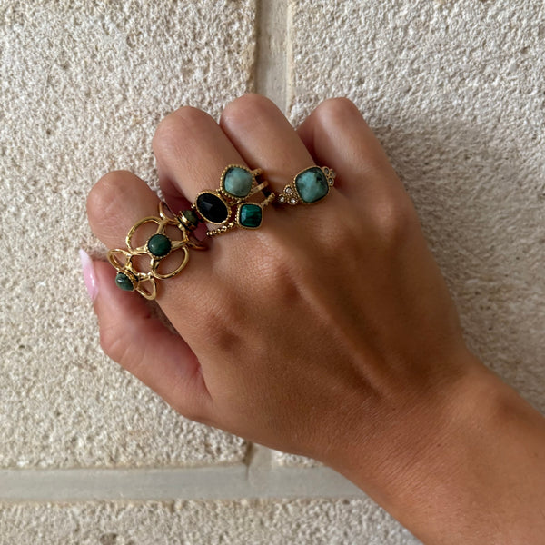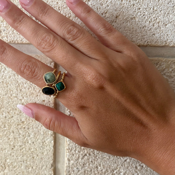 BAGUE CHARLIZE - TURQUOISE AFRICAINE / ONYX & MALACHITE